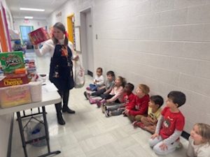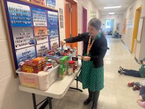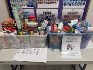 -We have collected 125 items of food and have earned our popcorn party! We are now trying for 200 items for a doughnut party. Friday is the last day for donations.