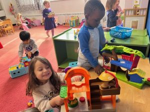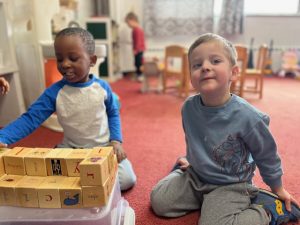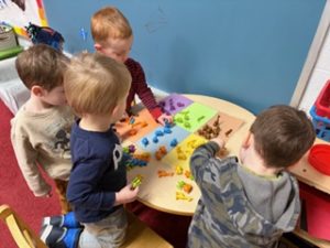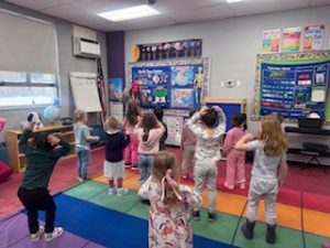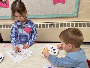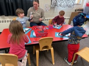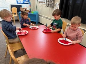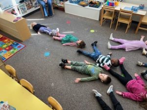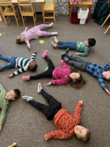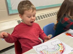 Cool Cats News: All the snow prompted a big practice of how to make snow angels in our Cool Cat Center room. The Cool Cats are ready to make beautiful angles in the snow! ❄️ We did make time to learn about the letter ‘R’, a shape review, and the number 0. We are beginning our number board which reviews the numeral number, how to write the number, the spelling of the number, counting fingers, and counting clothes pins on a line. We did two Rainbow crafts-cutting rainbow color squares on a letter
