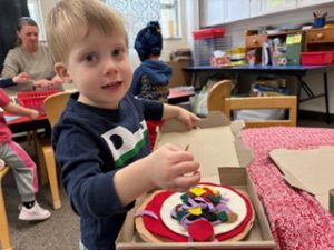 Playful Bunnies Class News-It was our Pizza week! One of our favorite books this week was Pete the Cat and the Perfect Pizza Party. In the book, they use lots of new foods to top their pizza. We did a story related craft where we painted a paper plate and topped it with different toppings from the book. We even tried some of the foods (pretzels, pickles and pepperoni) and graphed whether we like them or not. We also read Hi, Pizza Man. It was a favorite too! Really fun indoor week, but looking forward to getting back outside as soon as possible!