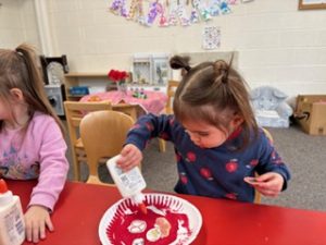 Top Dogs News: Next week we will work on the letters P and Q. Mr. P, Pointy Patches, the Party Planner has been helping us get ready for our Valentine’s day party. He has brought us Pretzels, Popcorn, Pistachios, Pepperoni, Pineapple, Peanut butter cookies, Potato chips, Paper clips, a potato and a parachute! We worked on learning our opposites, read lots of Valentine’s day books, and made some special valentines.