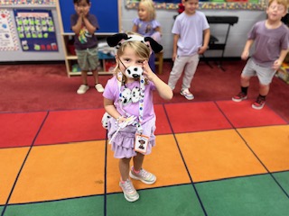 We start our letter people time on the rainbow rug by singing our “ABC” song. We then remember what letter
