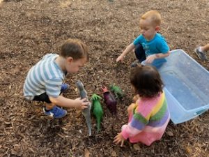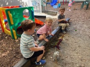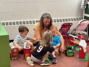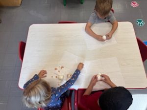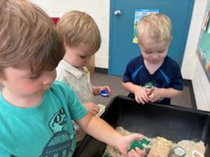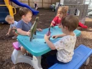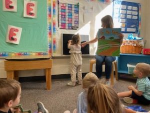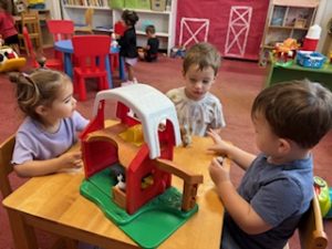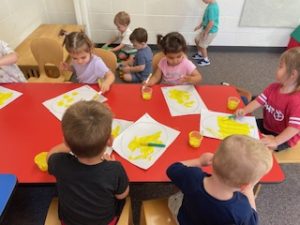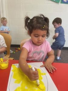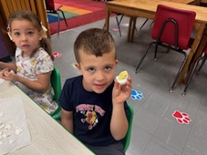 The Playful Bunnies News-This week the bunnies had fun learning about the letter E and the farm. We are continuing having a fun time with our farm in our playroom. During circle time we had two puppet friends for the letter E, Elmo and Eleanor the Elephant! Elmo introduced the letter E to us and brought an E is for Elmo craft. We also read, recognized, and matched farm animals that were in books. We practiced peeling stickers and putting them on a farm scene. We also sorted eggs in nests by color and painted an egg yellow that we will “hatch” next week! We are having so much fun at school!