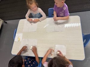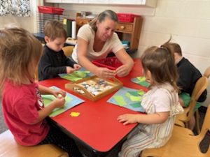 Cool Cats News-‘F’ is for Feather, Fish, and Firefighters! We had a great week learning the sound F makes, doing a gluing Feather craft, scissor cutting Fish Crafts and painting Fire Hose craft. We read lots of F books and played with Fish in our center room. After snack we have our second meeting in the snack room. We use this time to sing songs, use the felt board, and always read another book. The Cool Cats have a favorite activity which is guessing what’s in the LOVE box. The item always starts with the letter of the week and our craft is related to the surprise in the love box. This week it was a feather!🪶