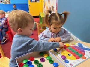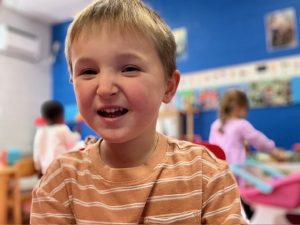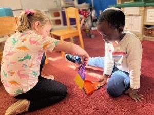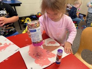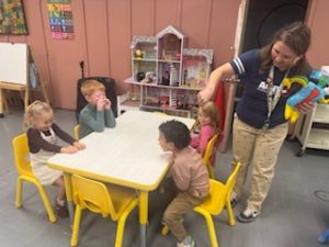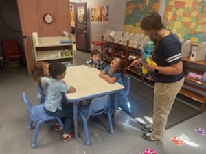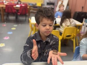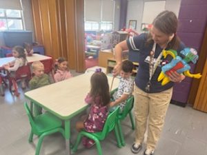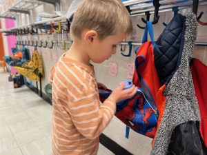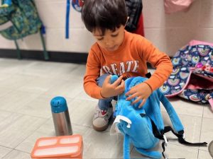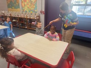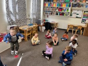 Cool Cats News: Welcome Back Cool Cats! 🐈 We had a great week getting back into the routines of school. We focused our learning on the letter ‘J’ and the sound it makes. We glued Jewels on a letter J, filled a jellybean jar with paper jellybeans, and painted a jellyfish with sparkled purple paint and glued on its tentacles. The Cool Cats are starting to sit quietly for books and have really enjoyed the art table in the center classroom. The students love to practice with scissors and use the mini stamps. Our music and movement time involved balancing bean bags on our body parts and singing the Bean Bag Bop!
