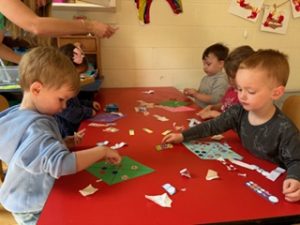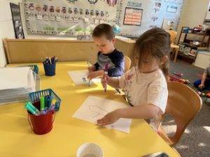 Cool Cats Class News: The Cool Cats are so thankful to get outside to enjoy the Weather and learn about the letter W. We also covered the number 12 and a pentagon. We reinforced the shape by doing a shape hunt during meeting time. We did a stamping Worm craft and read a book about Worm Weather that brings the worms to the surface. We also read a book called Watermelon Seed and practiced our scissor skills by cutting green and pink strips of paper to make a watermelon. We went out to the patio at school and observed the clouds and tried to find shapes in the clouds just like the book, Looks Like Spilled Milk. Our Weather this week cooperated!